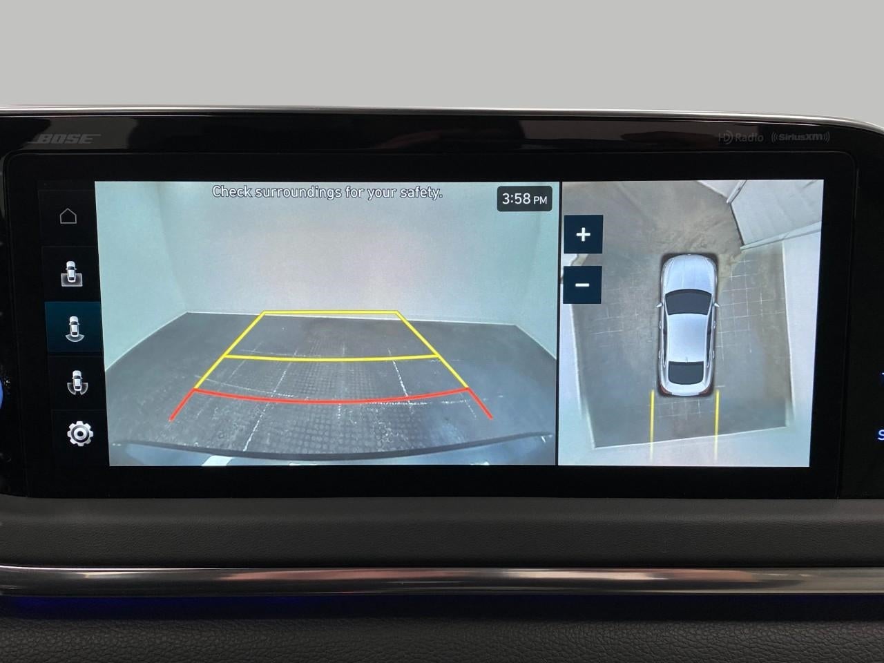 - Radio: AM/FM/MP3/HD/SiriusXM Display Audio w/Nav -inc: 10.25" color touchscreen, Bose premium audio w/12 speakers (1 center channel, 2 dash, 2 front tweeters, 4 door mounted, 2 rear mounted speakers plus 1 rear mounted subwoofer), dynamic voice recognition, integrated Bluetooth®, Blue Link connected car system, Apple CarPlay, Android Auto, USB, diversity antenna for navigation and HERE HD traffic